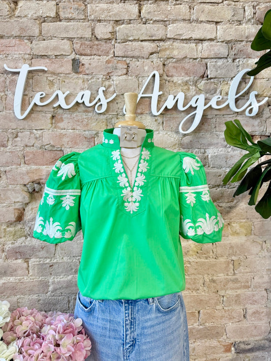 Giving It A Chance Green Embroidered Blouse
