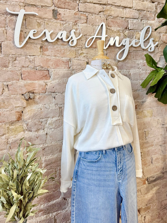 She'll Come Around Off White Collared Top