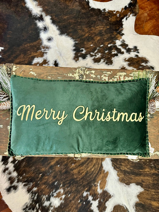 Merry Christmas Green Velvet Pillow