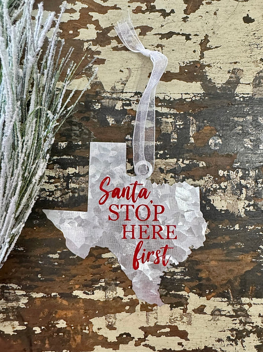 Santa Stop Here Texas Christmas Ornament