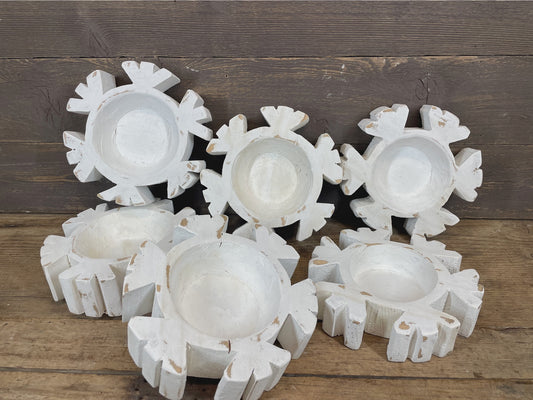 White Wooden Snowflake Bowl
