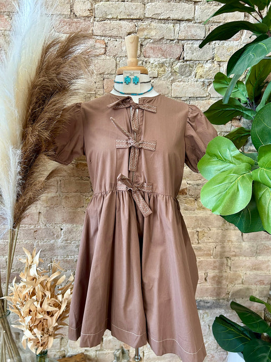 Ribbons & Bows Brown Babydoll Dress