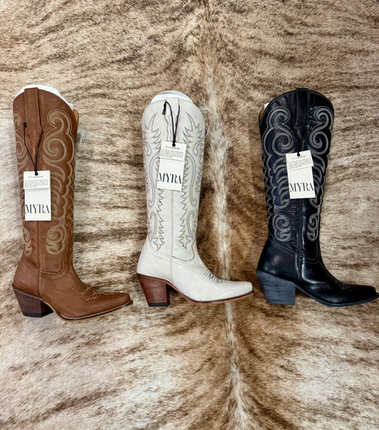 RESTOCK MYRA Brown Embroidered Leather Boots