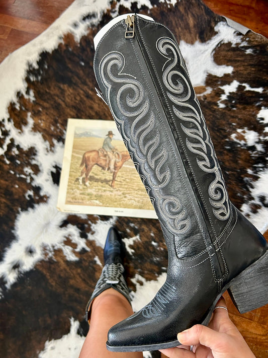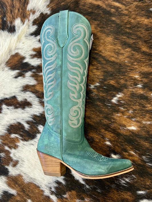 RESTOCK MYRA Teal Embroidered Leather Boots