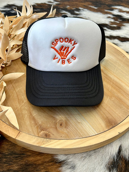 50% Off - Spooky Vibes Black Embroidered Trucker Hat