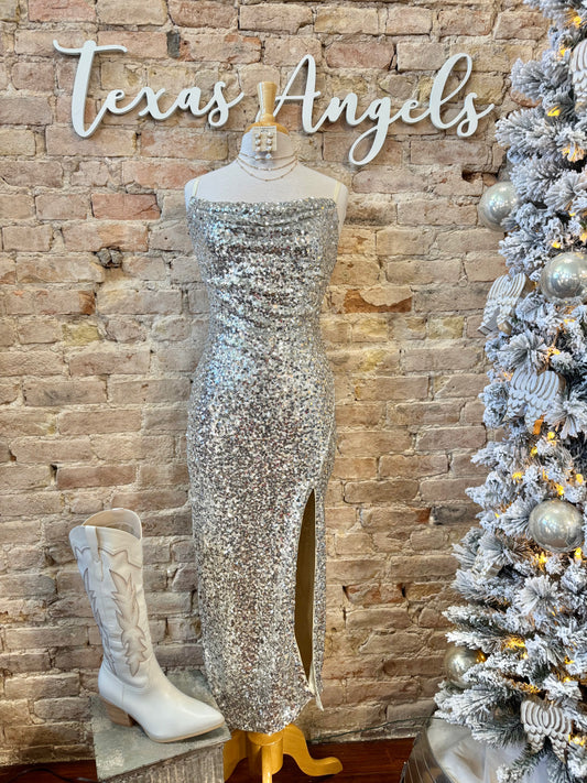 50% Off - Shine Bright Silver Sequin Mid Maxi