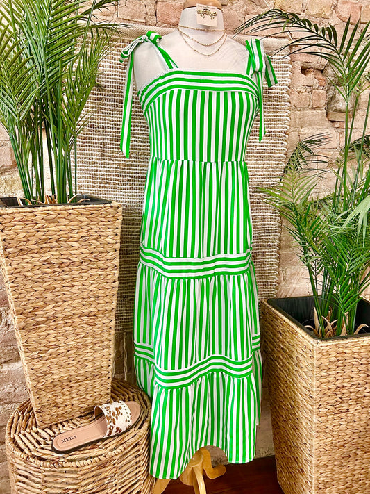 50% Off - Must've Missed You Green Striped Maxi Dress