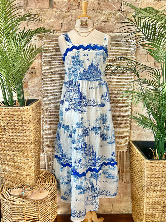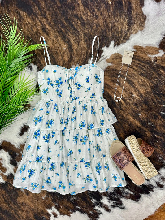 50% Off - Barefoot On A Boat Blue Floral Dress