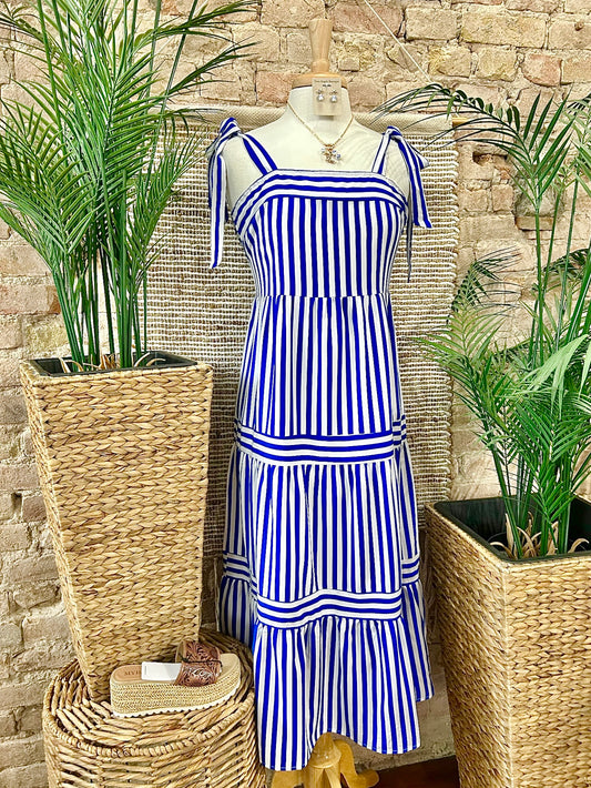 50% Off - Must've Missed You Navy Striped Maxi Dress