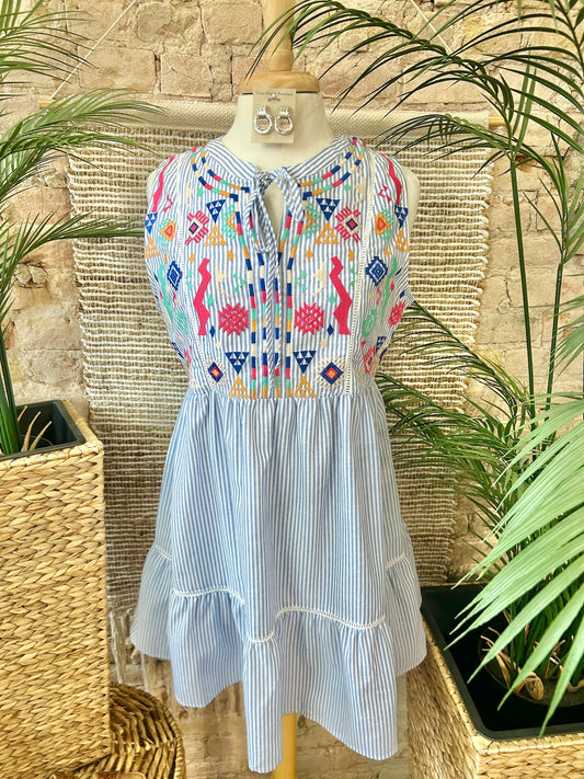 50% Off - Happily Ever After Blue Striped Embroidered Dress