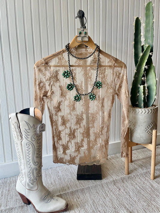 RESTOCK Lovely In Lace Light Brown Lace Top