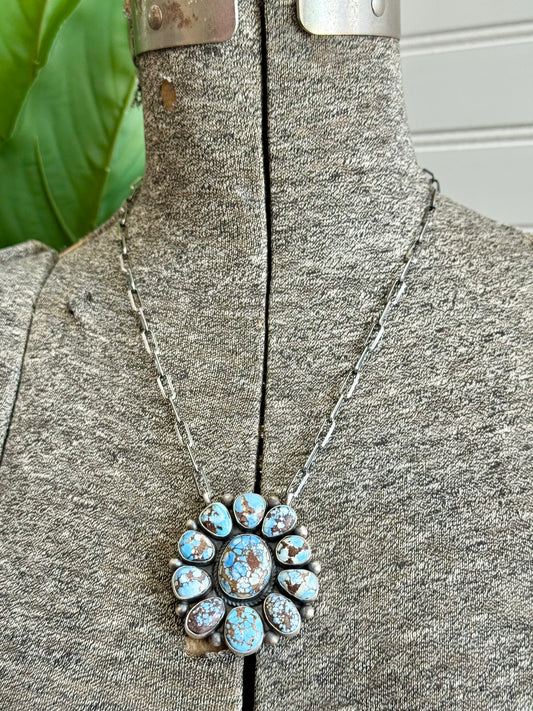 Navajo Handmade Silver Sonoran Gold Turquoise Cluster Necklace