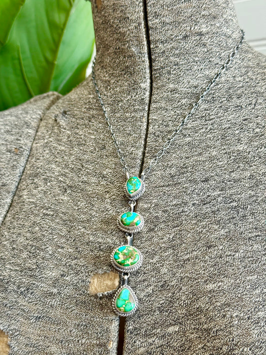 Navajo Handmade Sterling Silver Sonoran Gold Turquoise Lariat Bar Necklace