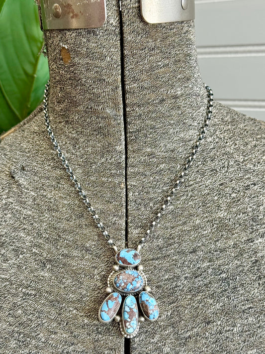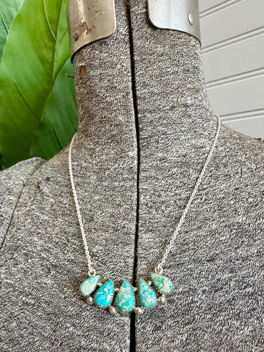 Handmade Sterling Silver & Sonoran Turquoise 5 Stone Necklace