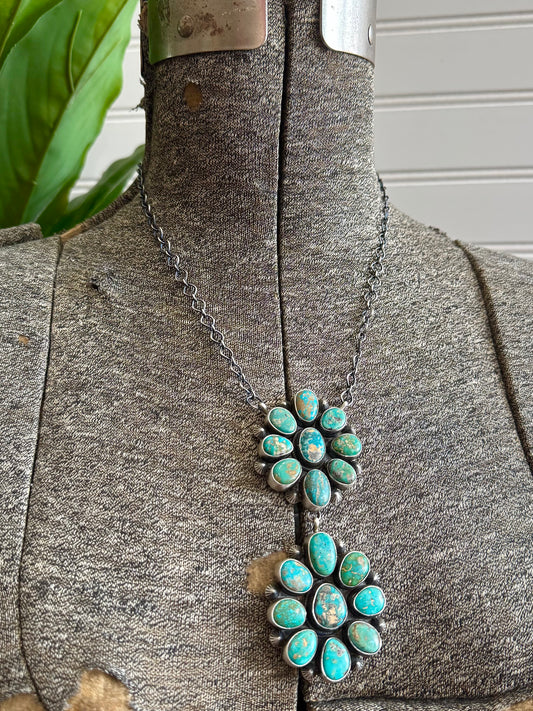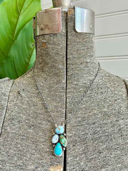 Native Navajo Handmade Sterling Silver Mixed Turquoise Cluster Necklace
