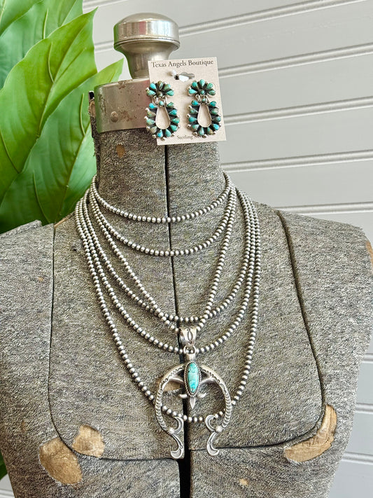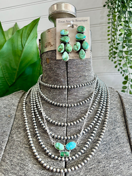 Sterling Silver Navajo Pearls & Kingman Turquoise Necklace