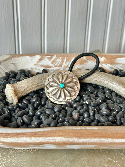 Sterling Silver Kingman Turquoise Concho Hair Tie