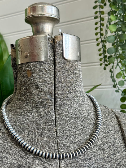 6MM Sterling Silver Navajo Saucer Beaded Necklace