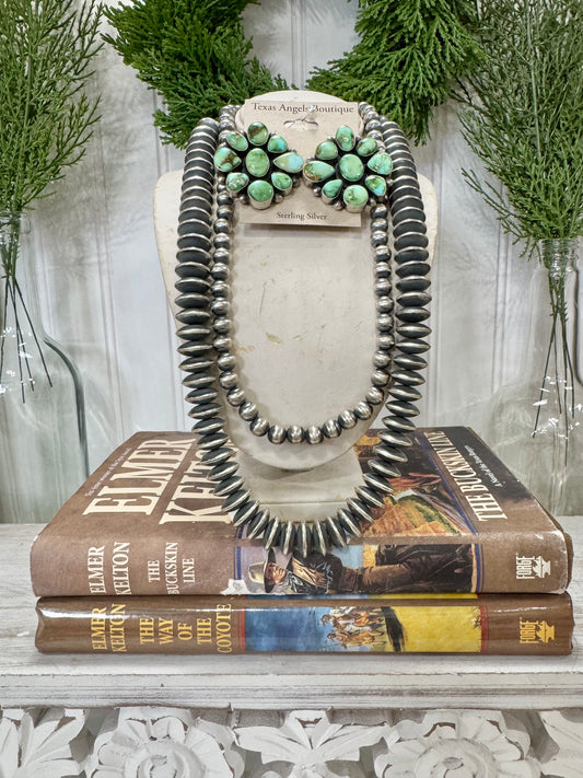 Sterling Silver Navajo Pearls & Kingman Turquoise Necklace