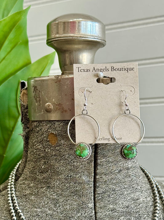 Navajo Handmade Sterling Silver Sonoran Gold Turquoise Hoop Dangle Earrings