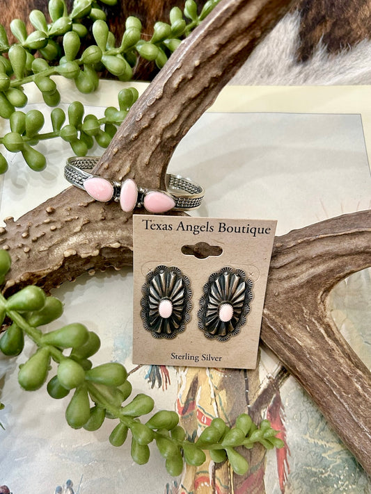 Sterling Silver Pink Conch Concho Studs