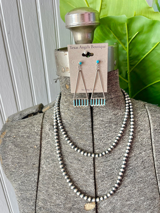 Sterling Silver Navajo Pearls & Kingman Turquoise Necklace