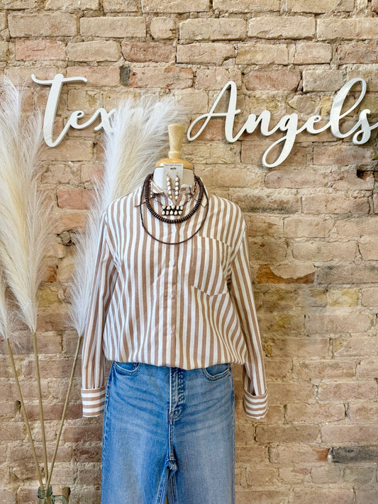 Soft Spoken Taupe Striped Shirt