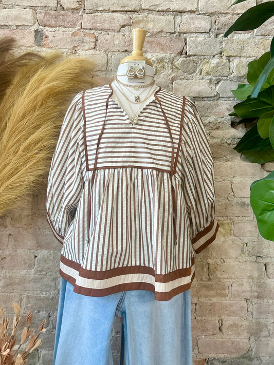 Falling Into Place Brown Striped Blouse