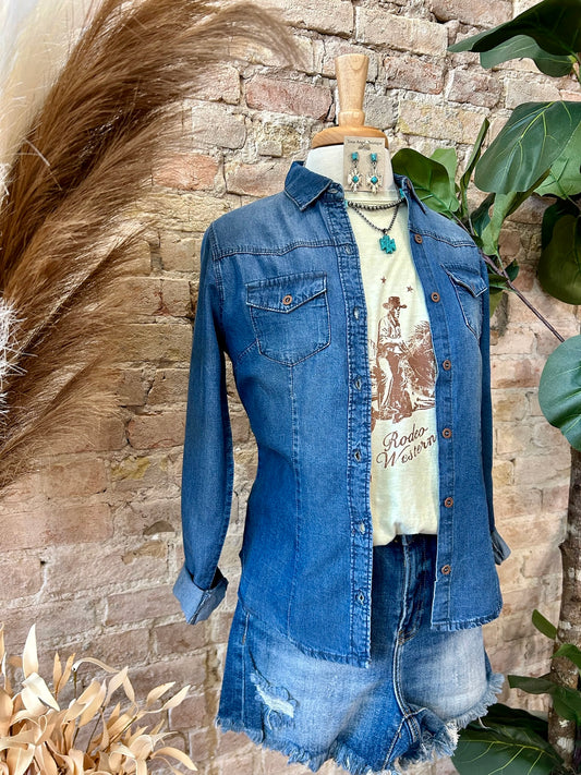 Desert Dreamin' Medium Wash Chambray Denim Top