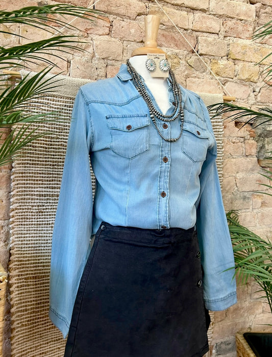 Desert Dreamin' Light Wash Chambray Denim Top