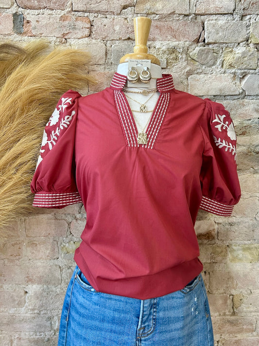 Fine The Beauty Burgundy Embroidered Blouse