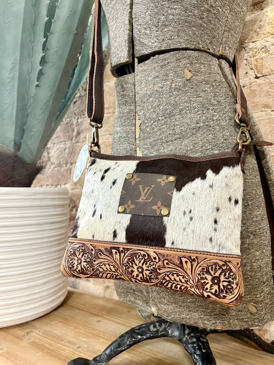 Upcycled LV Tooled Leather Crossbody