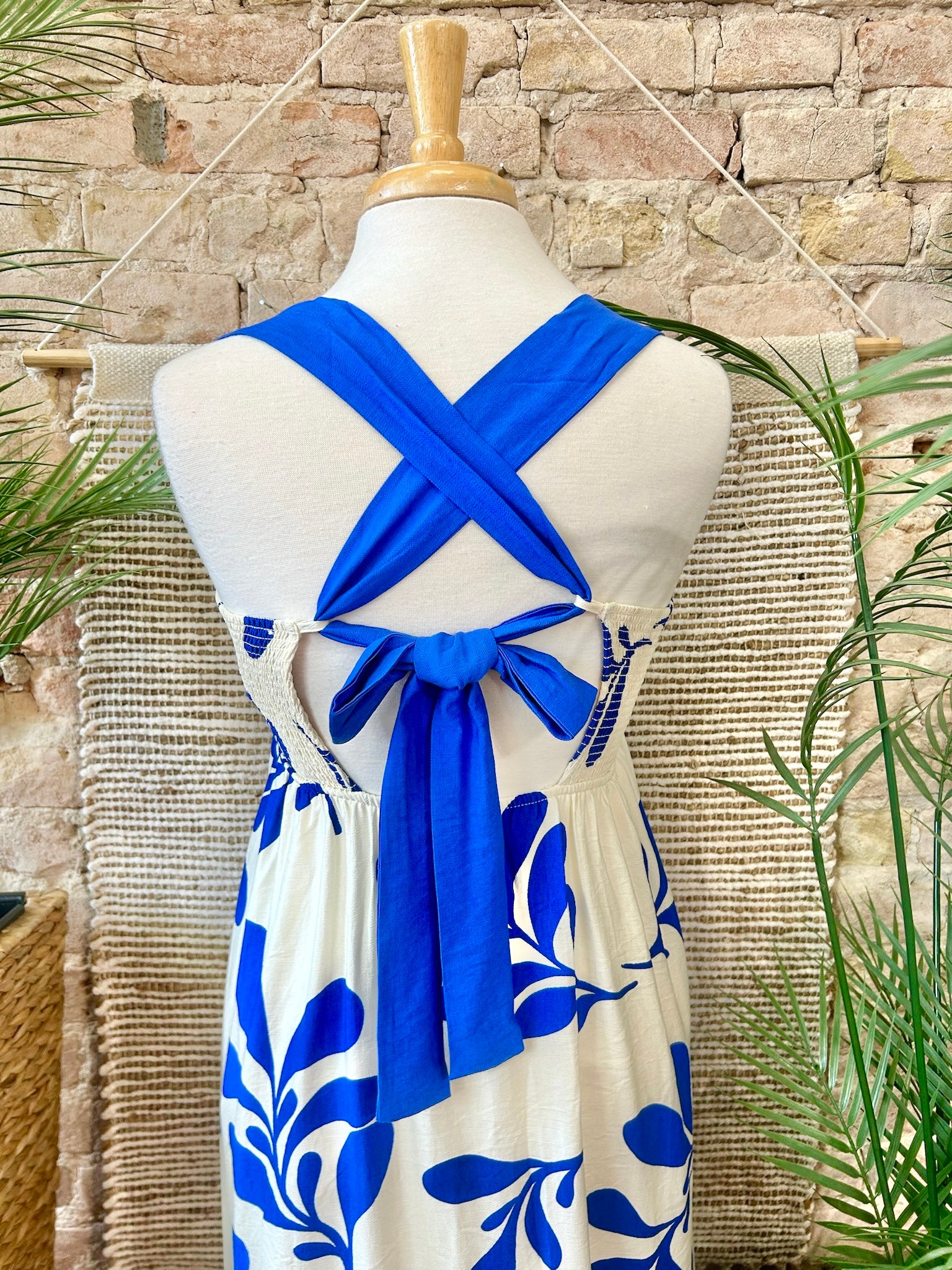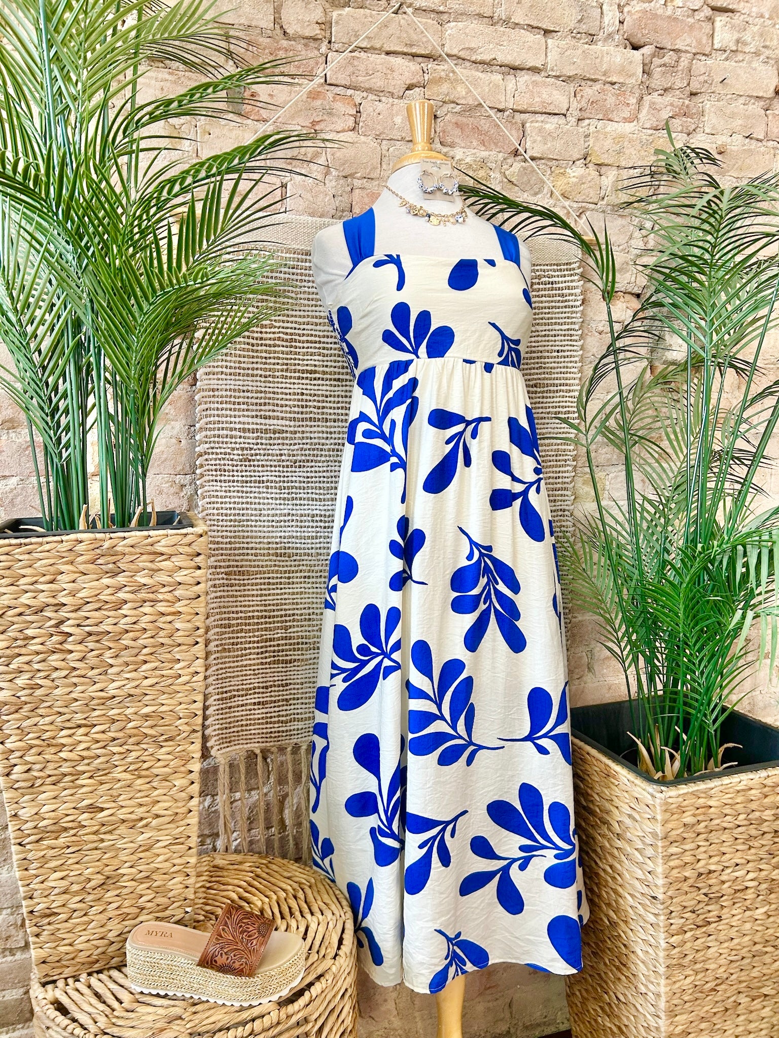 50% Off - Radiant Royal Blue Leaf Maxi Dress