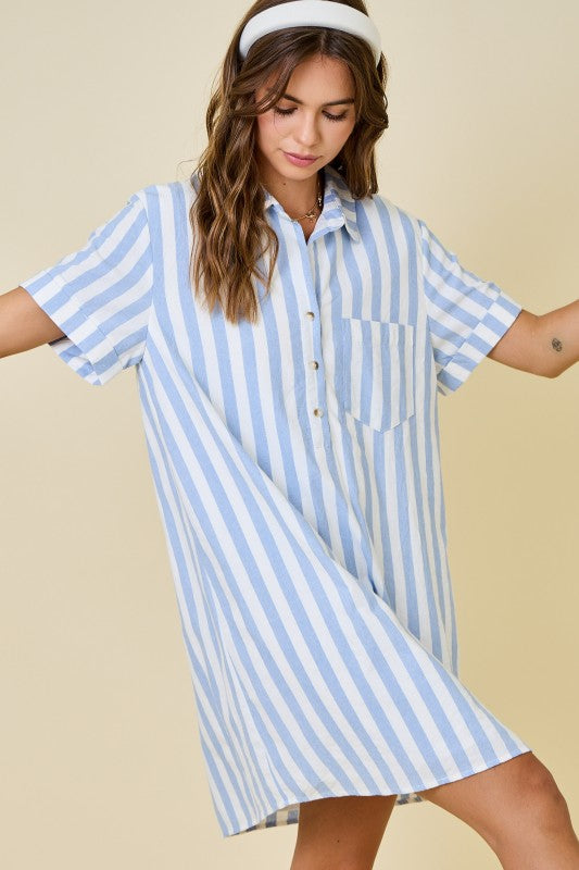 Sea Shells & Cocktails Light Blue Striped Dress