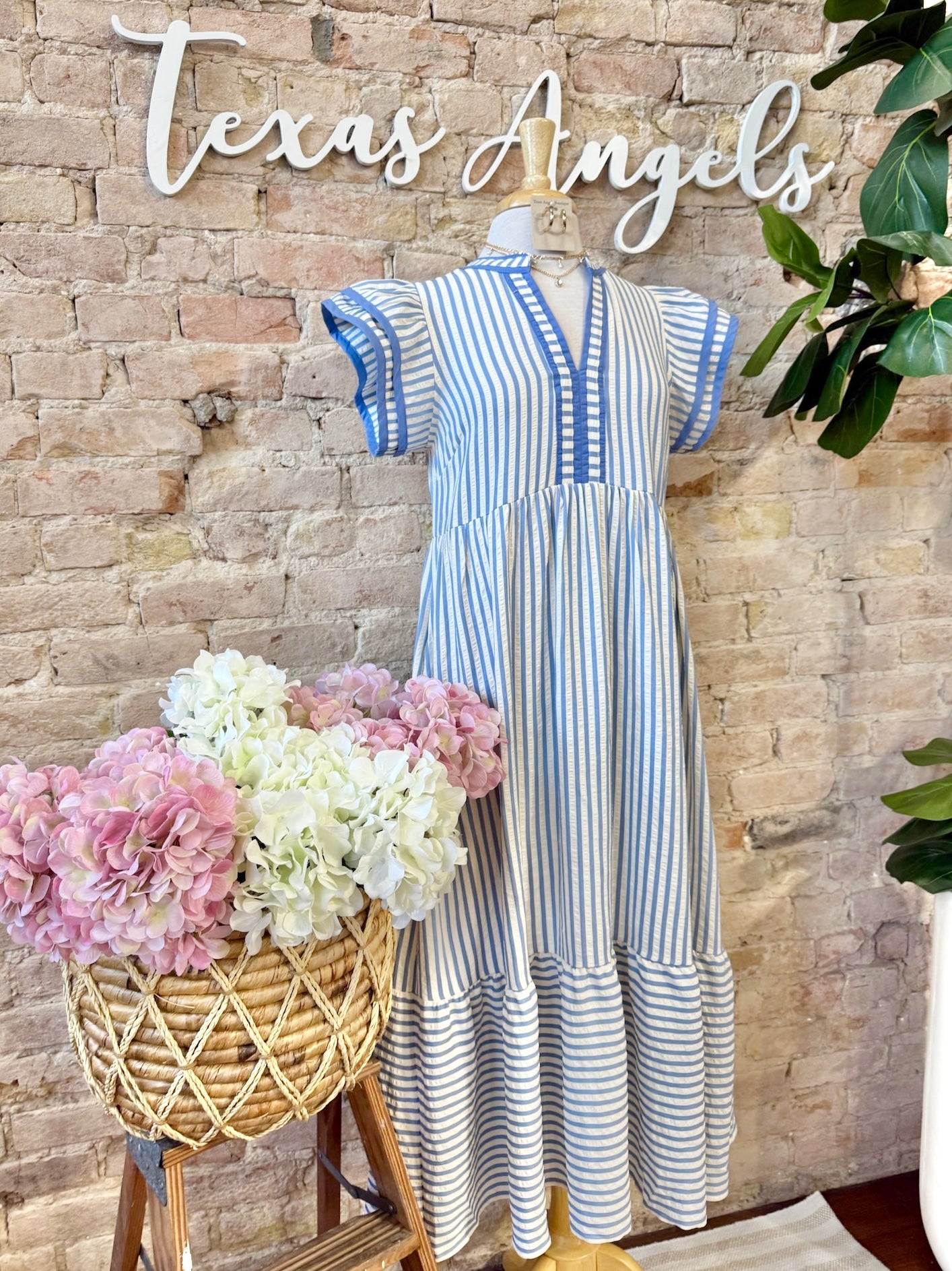 She Was Meant For You Blue Striped Mid Maxi