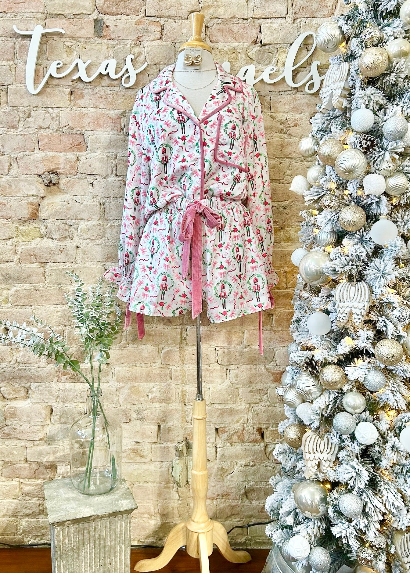 Dreaming Of A Pink Christmas Nutcracker Satin Christmas PJ Set