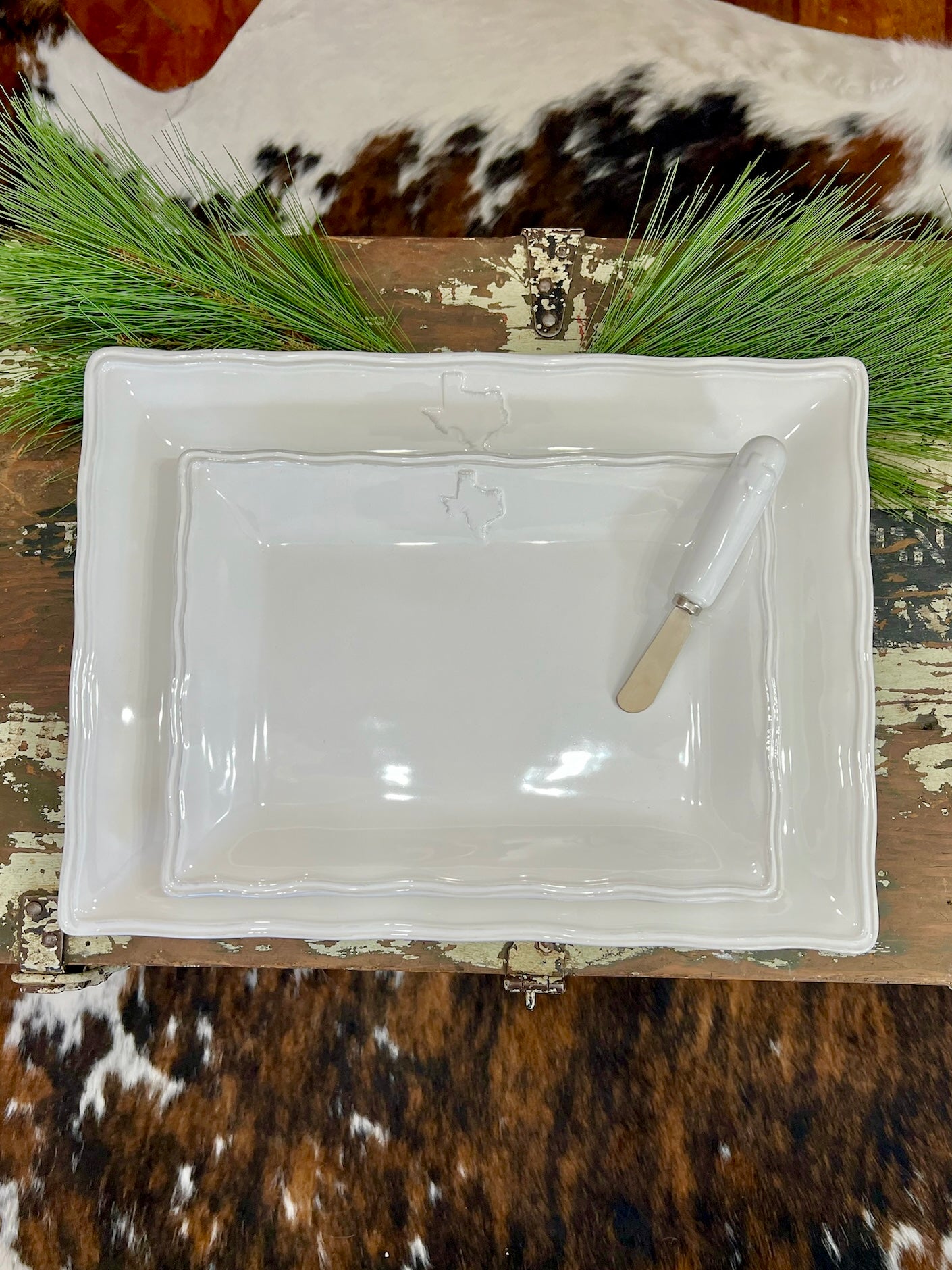 Large White Square Texas Platter